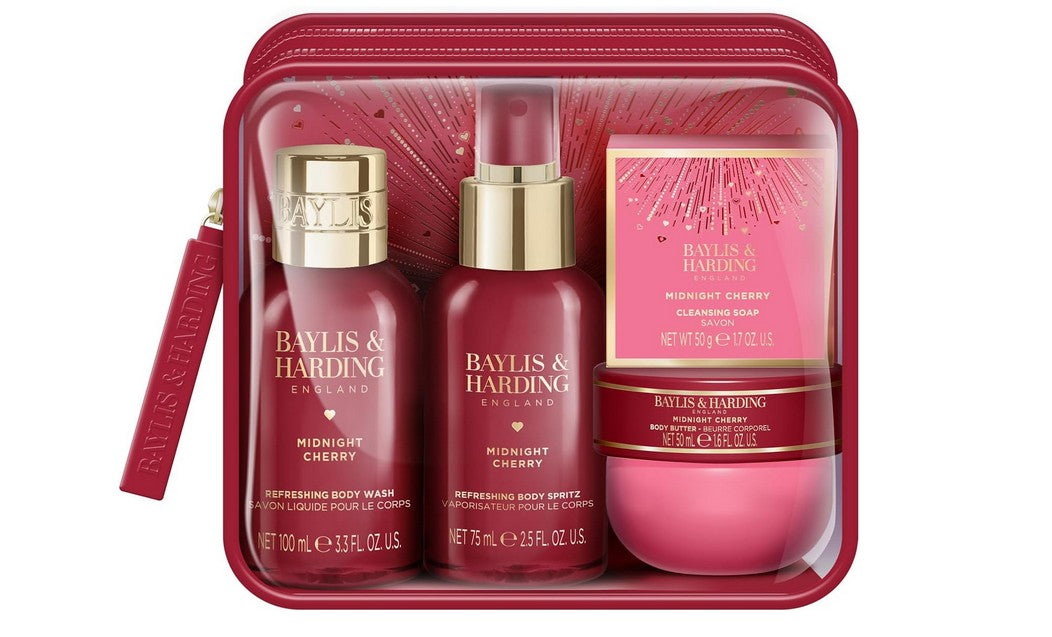BAYLIS & HARDING Midnight Cherry Luxury Travel Wash Bag Gift Set