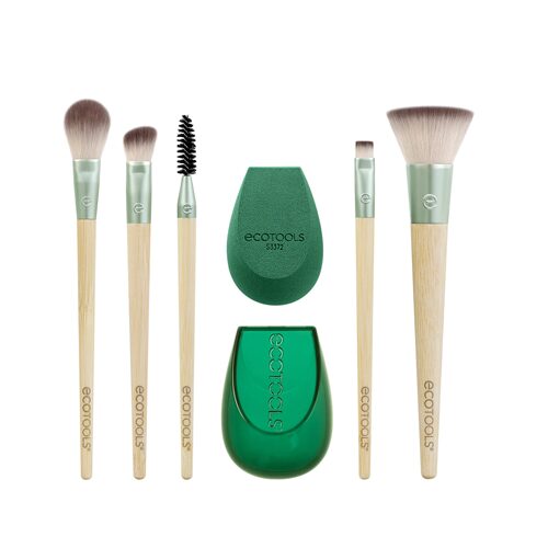 El set EcoTools Shimmer + Shine te ofrece 6 herramientas de maquillaje esenciales y un estuche de esponja de maquillaje, para que puedas lucir tu brillo dondequiera que estés. Incluye: 1 Brocha fijadora controlada, 1 Brocha para pliegues en ángulo, 1 Brocha Spoolie, 1 Brocha para delineador de ojos plana, 1 Brocha amortiguadora para el cutis, 1 Esponja perfeccionadora fresca y 1 Estuche de esponja